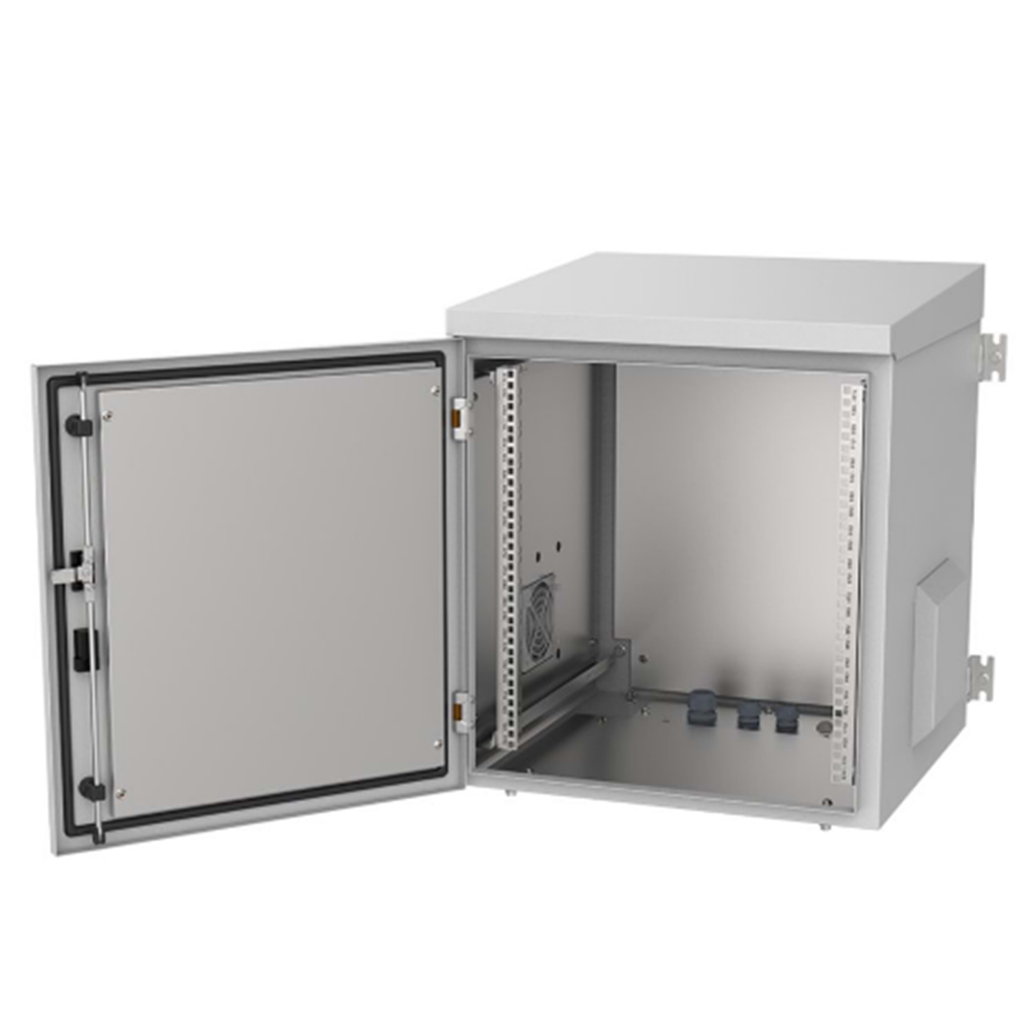 AGER KGYS KABİN W600 D500 H500 AGER MONTAJLI SAHA TİPİ OUTDOOR IP66 (1.5-1MM) CIDAR-BOLMELİ DİREK TİPİ +4U CİHAZ DİKME+(1+1) REM. FAN MONTAJINA UYGUN + HAREKTSIGORPNL MON UYGUN+KAPI SWITCH MONTAJINA UYGUN (ON METAL KAPAK D- B2 7035 )